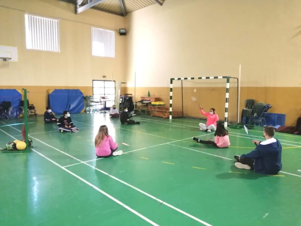 En educación física, con motivo de la semana de la diversidad funcional, se está realizando un taller de deportes paralímpicos: voleibol sentado, bádminton adaptado, fútbol adaptado, baloncesto en silla de ruedas, atletismo con guía, boccia y goalball.
